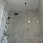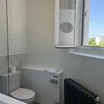 Bekvämligheter på badrummet inkluderar en duschkabin och en separat toalett, samt hårtorkar och handdukar.